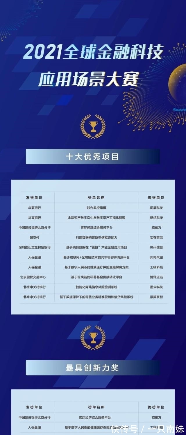 9月29日,2021全球金融科技应用场景大赛(以下简称“大赛”)总路演在北京新动力金融科技中心成功举办。本次大赛“十大优秀项目”和“最具创新力奖”获奖企业名单隆重揭晓。